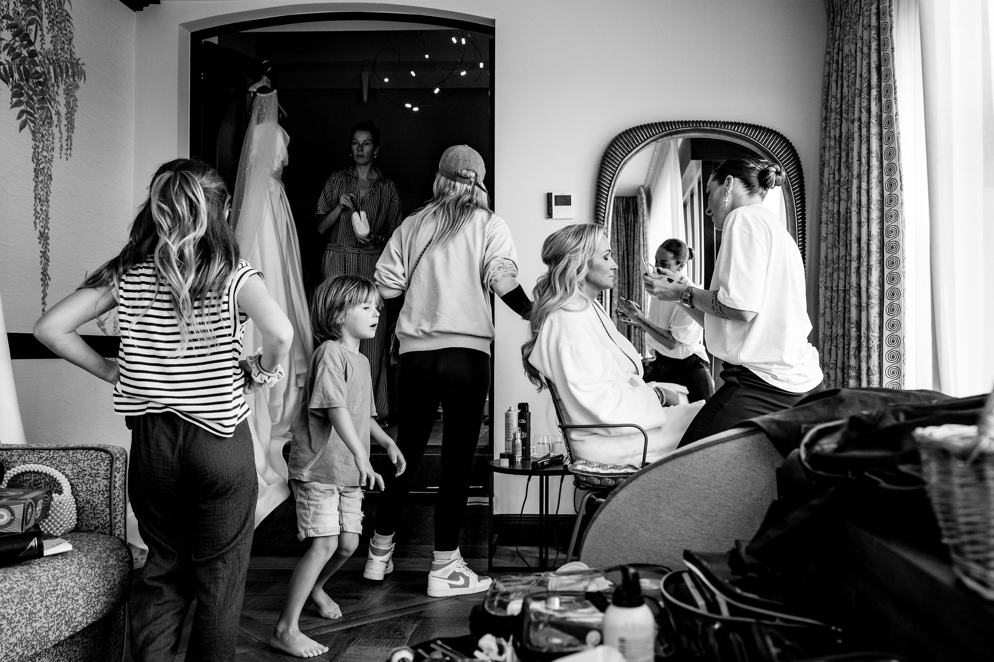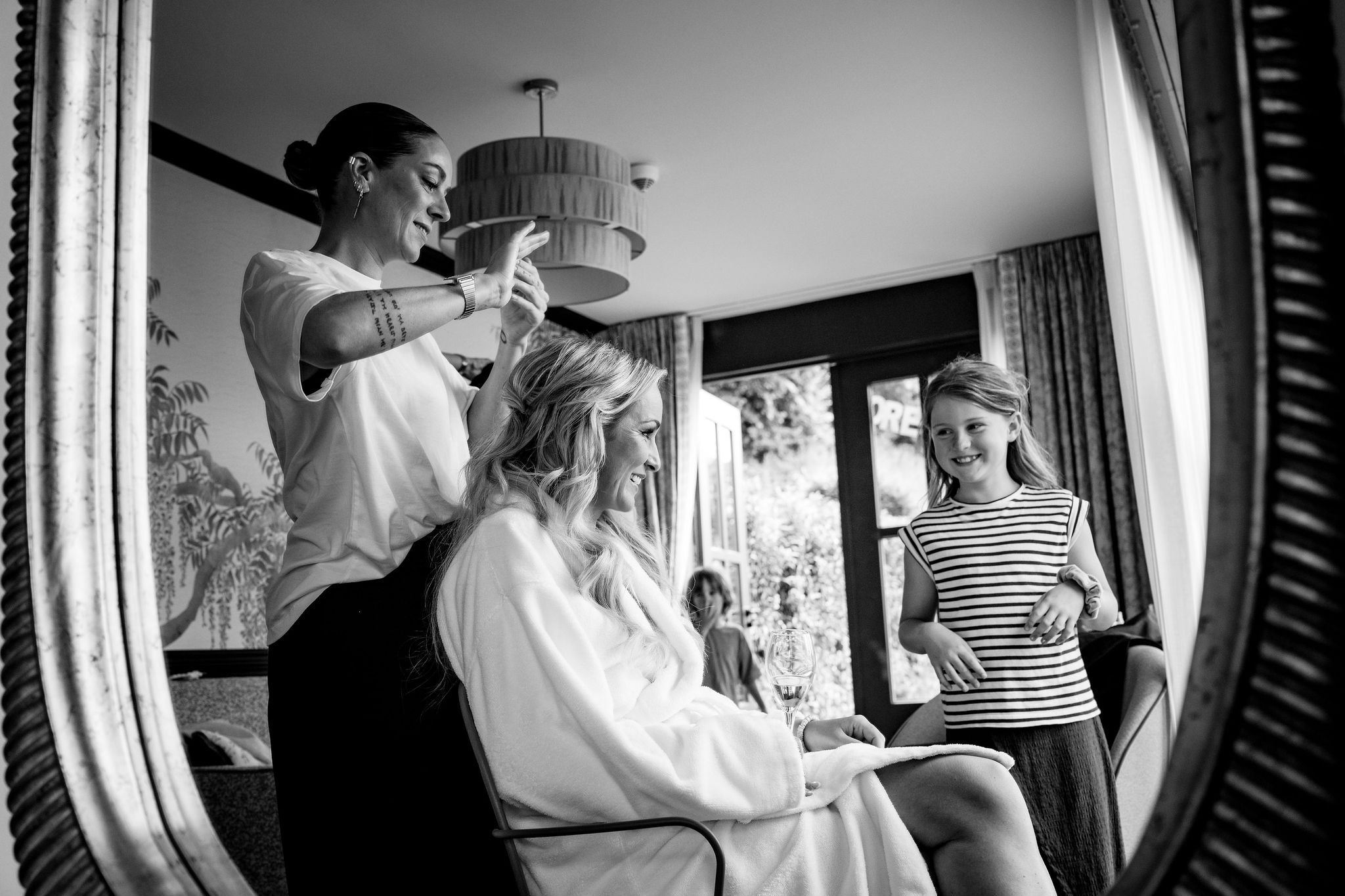 Een luxe totaalervaring. Inclusief alles uit de vorige pakketten, én mijn aanwezigheid de hele dag voor touch-ups wanneer nodig. Eventueel ook een make-up- of hairstyle verandering voor de avond.